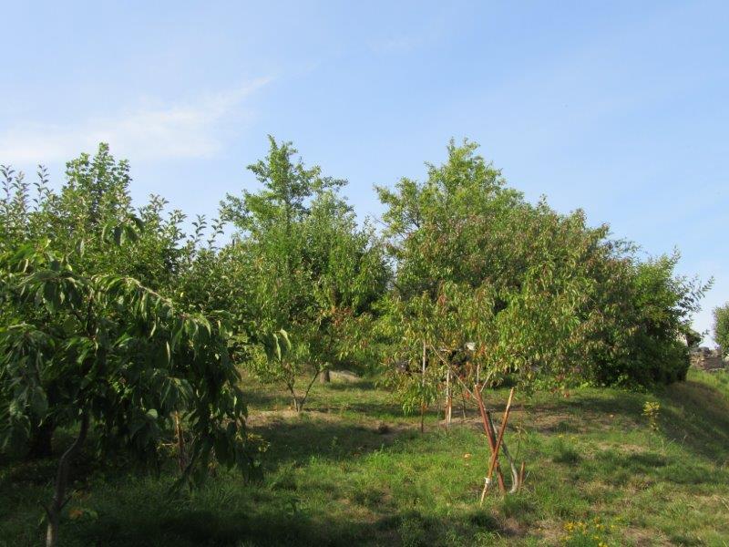 Na działce liczne drzewka owocowe, krzewy, pyszne winogrona oraz maliny.