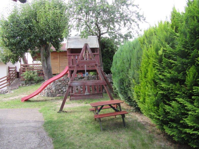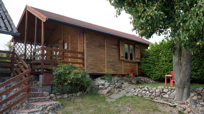1/ domek drewniany na 6 osób, łazienka, aneks kuchenny.